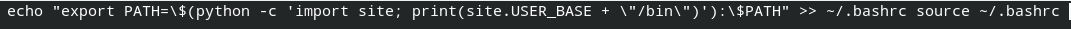 echo "export PATH=\$(python -c 'import site; print(site.USER_BASE + \"/bin\")'):\$PATH" >> ~/.bashrc